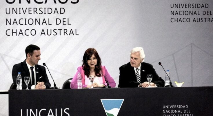 Fernández de Kirchner realizó este viernes una conferencia magistral titulada “Estado, Poder y Sociedad: la insatisfacción democrática”, en la ciudad chaqueña de Resistencia, en la que abordó la problemática económica y fundamentó sus cuestionamientos a partir de entender que “se está dando en Argentina el fenómeno de que los trabajadores en relación de dependencia son pobres”.