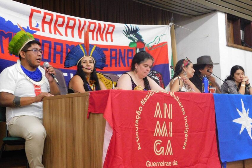 Las voces de los pueblos originarios fueron protagonistas en este encuentro, identificando un contexto común de colonialismo, invasión, despojo, extractivismo y falsas soluciones, acompañado de una política de aniquilación y genocidio, en la que no solo se mata, sino que también se invisibilizan estos pueblos, criminalizándolos y persiguiéndolos. En este punto, vemos la relación entre cuerpo y territorio como un tejido en el que, si bien reside la violencia estructural, también reside la lucha por la vida. Esta lucha es evidente y se traduce en las resistencias alternativas, a través de la valorización y articulación de saberes, cosmologías en las que la ancestralidad y la naturaleza están presentes, además de la autodefensa, de la autodeterminación, de la vida comunitaria y la importancia de la esperanza y de la unidad entre los distintos territorios.