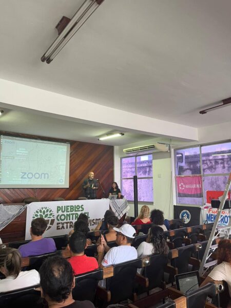 Tuvimos un ejemplo de lo que sucede cuando, en lugar de fortalecer la lucha de los pueblos que defienden sus territorios con sus propias vidas, los defensores del neoliberalismo progresista se ponen al servicio del capital y del extractivismo depredador. Las amenazas políticas sufridas por la compañera indígena Auricelia Arapiun, durante su intervención en nuestro panel de análisis de coyuntura, son una radiografía de un sector que actúa dentro de las comunidades para instalar el miedo y la fragmentación. Sin embargo, nosotros (como expresó Auricelia en su respuesta a la amenaza) no nos callamos y no conciliamos.