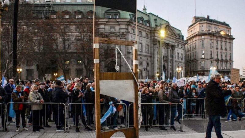 Por otro lado destacan que “lo más preocupante es la violencia que vimos en la movilización del 9 de julio en Plaza de Mayo, organizada por grupos opositores al Gobierno que incluyó símbolos como una guillotina con el logo del Frente de Todos, bolsas negras con nombres específicos, horcas, guillotina y fotos de nuestras madres y abuelas con la frase “Presos, muertos o exiliados”.
