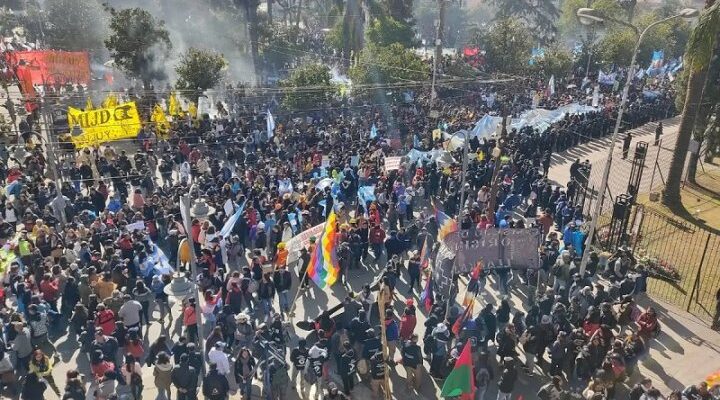 En la calle,  organizaciones sindicales, sindicales y comunidades originarias salieron a protestar frente a la casa de gobierno y fueron reprimidos con balas de goma  dejando como saldo  personas detenidas.