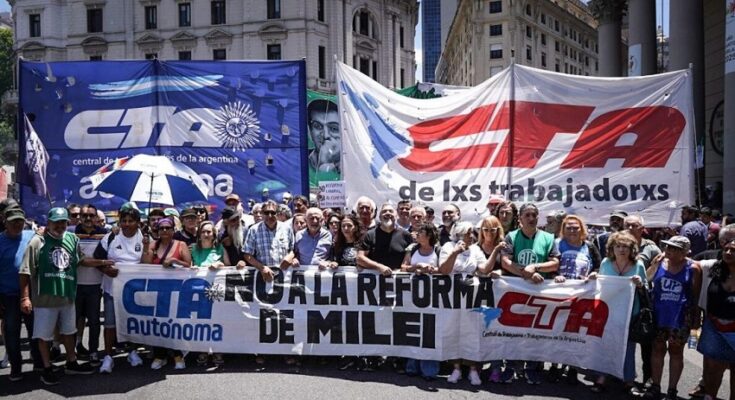Hugo “Cachorro” Godoy, secretario general de la CTA-A, dijo: “Esta jornada nacional de lucha está desbordando las calles y las plazas de todo el país. El estado de movilización y con medidas de fuerza es permanente, somos millones para construir otro país que no sea esta colonia que quiere imponer Milei. Es evidente el rechazo que esta ley de reforma laboral tiene en la mayoría del pueblo argentino. Esta movilización no va a ceder hasta que impidamos que esta ley pueda ser aprobada en el Congreso”.