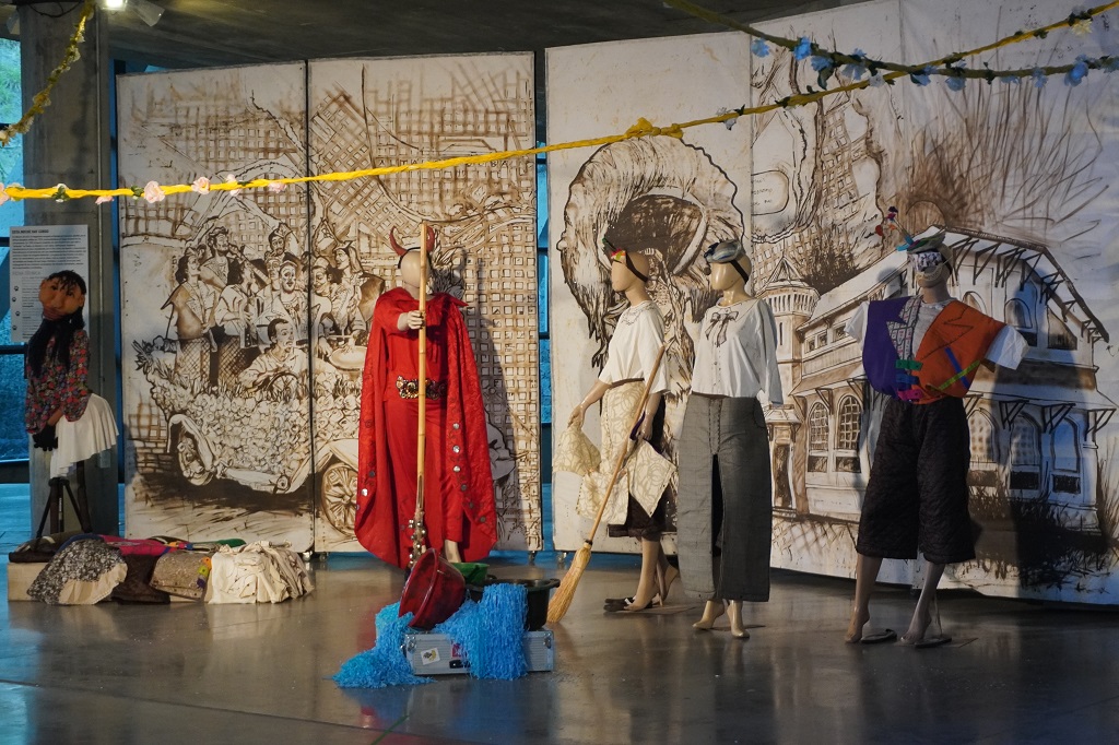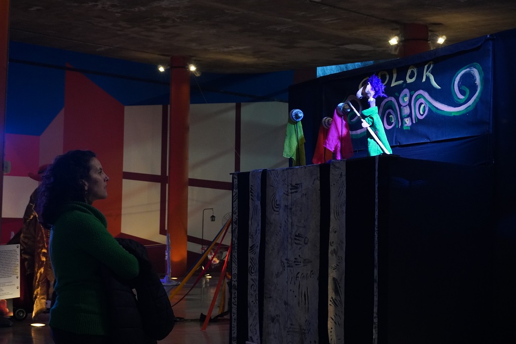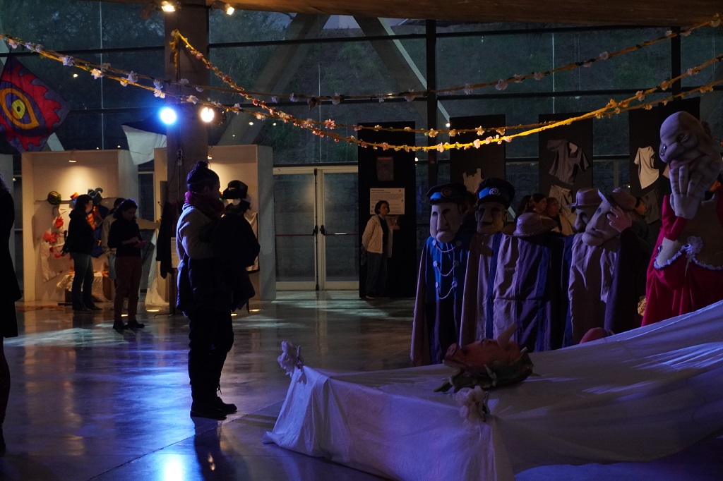 La muestra arma el recorrido de las obras que, salvo en un par de casos, siguen girando como parte del repertorio del grupo. Tuvieron que mover cantidad de telas, títeres, cabezones, objetos, vestuario y chiches, libros, fotos y recuerdos desde un departamento que aloja las obras, siempre listas para meterse en un baúl o una valija.